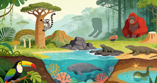 Journey to the planet's richest ecosystems with our Biodiversity Word Search! Find hotspots like AMAZON and GALAPAGOS, and animals like ORANGUTAN, AXOLOTL, and KOMODO. An educational and eye-opening puzzle for nature lovers.