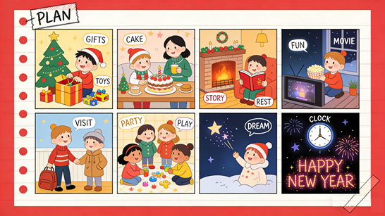 Stuck in the fun week between holidays? Our easy word search for kids features words like GIFTS, PLAY, DREAM, and PARTY! A perfect quiet activity between Christmas and New Year's celebrations.