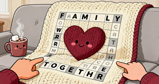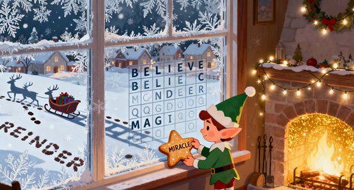Feel the magic of Christmas Eve with our festive word search! Find STOCKING, CAROLS, MISTLETOE, and FAMILY. A cozy and heartwarming puzzle for the whole family to enjoy together.